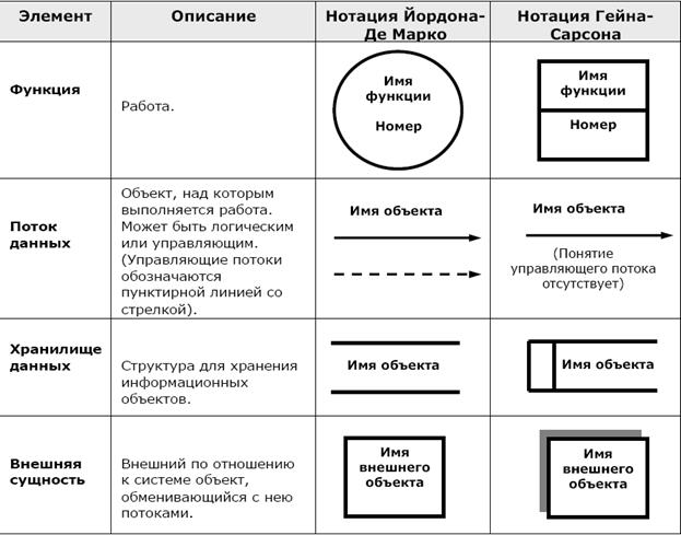 Таблица 3.2 – Элементы методологии DFD в нотациях Гейна-Сарсано и Йордана-Де Марко