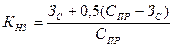 Этот коэффициент рассчитывается отношением себестоимости незавершенного производства к плановой себестоимости продукции. При относительно равномерном нарастании затрат в себестоимость продукции Кнз исчисляется по формуле: