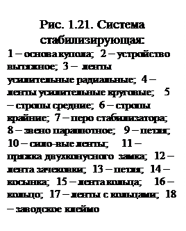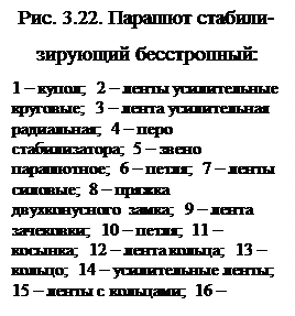 Парашют стабилизирующий бесстропный(рис. 1.22) состоит из купола, стабилизатора и парашютного звена.