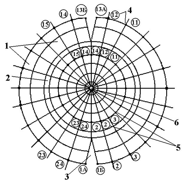 Основной парашют (рис. 1.25) имеет 26 основных строп (1), изготовленных из капронового шнура ШКП-150 (из них 22 стропы длиной 4 м и 4 стропы (4), прикрепленные к петлям щелей купола, длиной 7 м), 22 внешние дополнительные стропы (2)длиной 3 м, а также 24 внутренние дополнительные стропы (3)из капронового шнура ШКП-120 длиной 4 м.