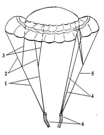 Основной парашют(рис. 1.24)предназначен для обеспечения безопасной скорости снижения и приземления парашютиста.