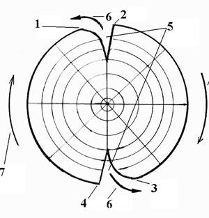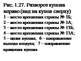 При натяжении правой стропы управления натягиваются стропы № 1Б и 13Б, втягивая внутрь нижнюю кромку купола. Поток воздуха, выходящий из-под кромки в месте ее подгиба, создает реактивную силу, которая вращает купол, и он разворачивается вправо (рис. 3.27).