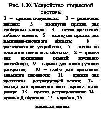 Подвесная система (рис. 1.28) изготовлена из капроновой ленты ЛТК-44-1600 и состоит из следующих частей: