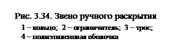 Звено ручного раскрытия (рис. 1.34) предназначено для раскрытия двухконусного замка самим па-рашютистом. Оно состоит из кольца, изготовленного из сталь-ного