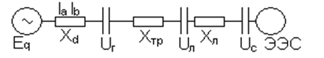 При отсутствии авт-го регулирования возб-я Eq=const ,Xc=Xт+Хл