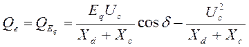 Макс-й акт-ой м-ти соотв-ет опред-ая реакт. м-ть. Можно получить зав-ть Qг=f(Pг). Зав-ть для неявнополюсного ген-ра представляет собой ур-е окружности.