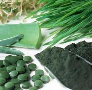 На снимке: экстрагированные водоросли Fucus vesiculosus /одна из составных частей известного в Европе препарата Colvita – прим. автора/, морские водоросли, прорастающая гречиха, алоэ и БАД, являющийся экстрактом этих четырех растений – комплект, признанный японскими учеными эталоном в профилактике последствий облучения.