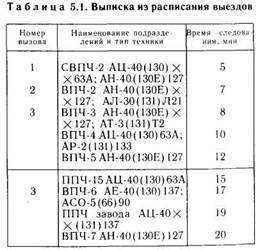 На рис. 5.4 можно видеть изменения ущерба от пожара на складе тары при сосредоточении сил и средств по установленному для склада повышенному вызову № 3 и при последовательном сосредоточении их сначала по вызову № 1, а затем после проведения разведки пожара по вызову № 3. Выписка из расписания выездов подразделений на данный объект и время их следования к месту пожара приведены в табл. 5.1.