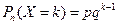 Т.о геометр.распр. есть испытание по схеме Бернулли до первого положительного исхода.Вероятности образуют бесконечно убывающую геометрическую прогрессию со знаменателем q=1-p (с этим связано название). Для геометр. закона распр. доказано, что мат. ожидание равно M(x)=1/p, дисперсия равна D(x)=