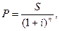 S – наращенная сумма, или будущая прогнозируемая величина денежных средств;