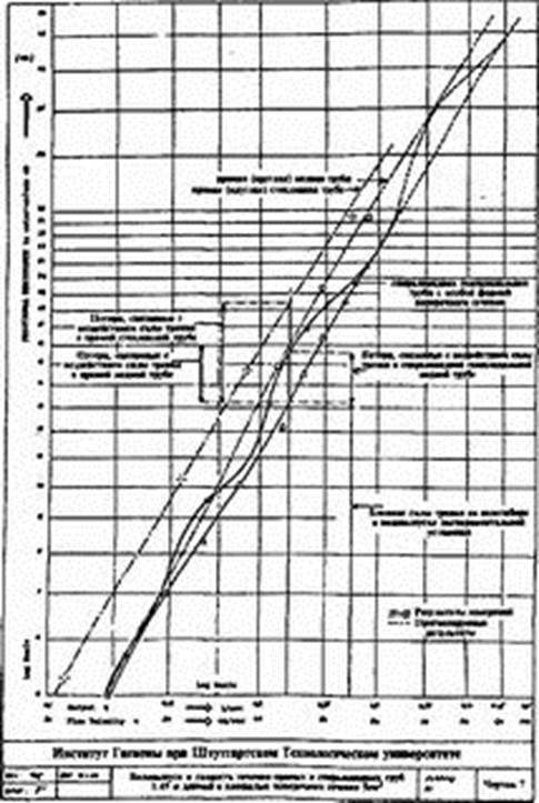 Соединительные линии взаимосвязанных измеренных величин водозабора и водовыпуска экспериментальной установки № 1, так же как соединительные линии прямых стеклянных и медных труб, имеют точно такие же направле юсходят по величине значения спиралевидных геликоидальных труб, тоже отображают характерные колебания по-ледних. Результаты измерений, полученные таким образом, затем использовались для определения потерь, вязанных с силой трения в тестируемых трубах длиной ,45 м, как обозначено на чертеже 7, каждая из ординат гежду q — h-линиями экспериментальной установки и тес-ируемых труб установлена и отображена в таблице 2.