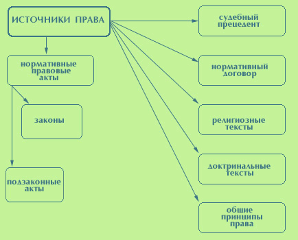 В истории развития права различают несколько видов источников права, причем их значение в каждом типе права неодинаково.