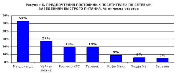 Согласно опросам основным критерием выбора заведения быстрого питания является вкус и качество предлагаемых блюд. Однако большое значение также играет и удобное месторасположение, заведения, так как решение о посещении подобных мест происходит, как правило, спонтанно.