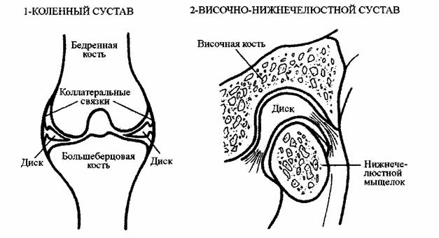 (например, коленный сустав) разделены с помощью мениска. Такие диски и мениски