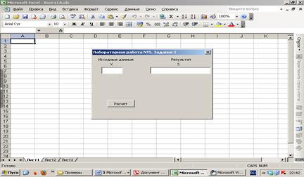 7. Для запуска программы из окна редактора Visual Basic щелкаем на зеленой кнопке на панели инструментов редактора (см. рис.6). После этого появляется следующее окно (рис.7):