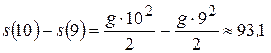 Вычислим теперь путь, пройденный телом за десятую секунду, то есть за промежуток времени от момента