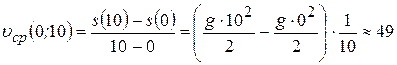 Найдем теперь среднюю скорость свободно падающего тела за промежуток времени от начала падения, то есть от