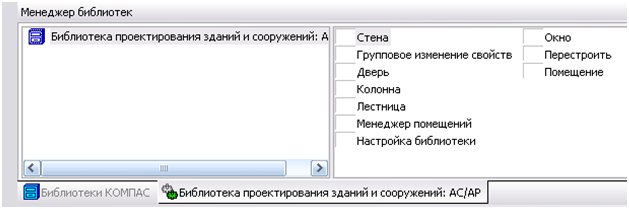 | Затем в Библиотеке проектирования зданий и сооружений дважды щелкаем по кнопке Окно. |