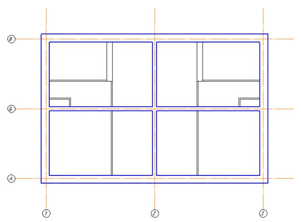 Базовая линия – условная линия, находящаяся внутри контура стены, позволяющая выполнять точную привязку стены к характерным точкам. Часто базовая линия стены совпадает с линией координационной оси.