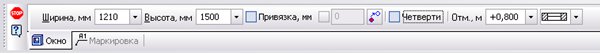 Высотную отметкуокна (подоконника) позволяет задать поле ввода Отм.,м, размер задается в метрах.