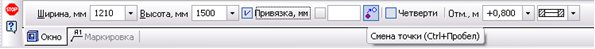 Опция Включение/выключение привязкивключает возможность осуществить привязку к любой точке на чертеже. Задать расстояние от проекции этой точки на стену до вновь создаваемого оконного проема позволяет поле ввода Расстояние привязки. Так же есть возможность наблюдать величину расстояния привязки в реальном времени. Шаг привязки можно изменить через Настройку библиотеки.