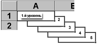 5-й уровень содержит примечания данной ячейки (произвольный текст). Если ячейка содержит примечание, то в правом верхнем углу появляется красный квадратик (точка)