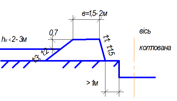 Грунтовые перемычки устраивают из глинистых и песчаных грунтов (рис.1 ). При проектировании таких перемычек прозводят расчеты устойчивости откосов, грунтов основания и фильтрационные расчеты.