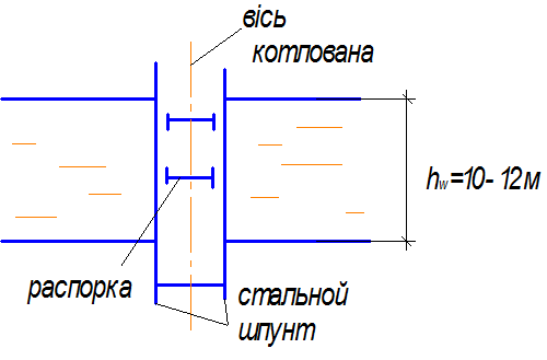 Перемычки устраиваются однорядными, так как обладают высокой водонепроницаемостью (рис.4). Глубина воды – до 12м. После возведення фундамента металлический шпунт извлекается и может быть использоваться несколько раз.