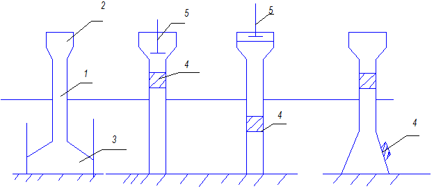 1) в грунт погружают пустотелую трубу с закрытым концом. Затем трубу вытаскивают и полученную скважину заполняют уплотненным грунтом;