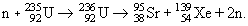 Характерной особенностью деления является то, что осколки деления, как правило, существенно различаются по массам, т. е. преобладает асимметричное деление. Так, в случае наиболее вероятного деления изотопа урана 236U, отношение масс осколков равно 1.46. Тяжёлый осколок имеет при этом массовое число 139 (ксенон), а легкий – 95 (стронций). С учётом испускания двух мгновенных нейтронов рассматриваемая реакция деления имеет вид