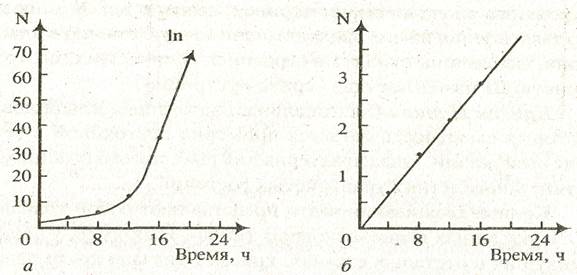 На современном математическом языке эта кривая (рис. 2, а) отражает экспоненциальныйрост численности организмов и описывается уравнением