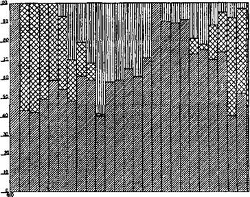 A. Если мы возьмем пятикратное деление главных течений в исследуемой области или трехкратное, то в течение всего изучаемого отрезка времени, разобьем ли мы его на 20-летние или же на 100-летние периоды, мы не обнаружим никакой устойчивой тенденции. Вместо этого мы наблюдаем ненаправленную флуктуацию: то одно течение переживает подъем, то другое. Результат, похожий на то, что было обнаружено и в других областях.