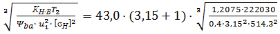 Таблица 1 – Вычисление ширины шестерни
