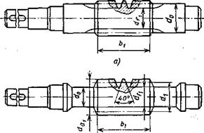 Витки червяков выполняют в большинстве случаев за одно целое с валом (рис. 10.8): фрезерованием при d0 > df1или нарезанием на токарных станках при d0 < df1; чем обеспечивается свободный выход резца.