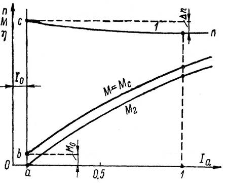 Скоростная и моментная характеристика двигателя последовательного возбуждения