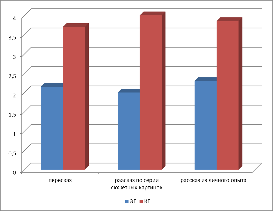 Результаты исследования оценивались по показателям как содержательной, так и собственно речевой сторон составленных рассказов. Большое значение придавалось анализу фразовой речи, используемой детьми в условиях составления сообщения без наглядной или текстовой опоры.