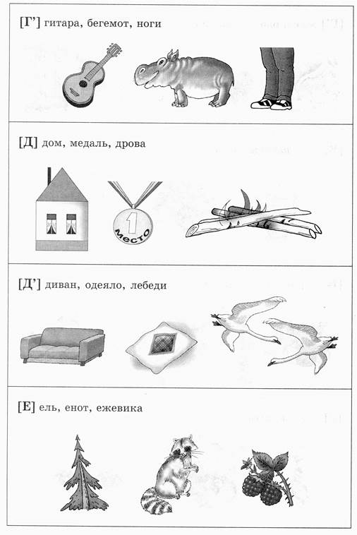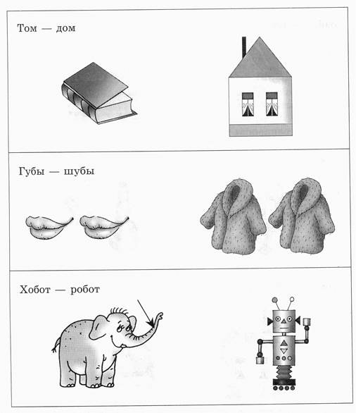 Следующее задание состоит в том, что ребенок должен указать картинки, названия предметов на которых отличаются друг от друга только одним звуком (из дифференцируемых):