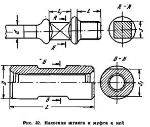 Насосные штанги выпускают в соответствии с ГОСТ 13877—68 диаметрами 12, 16, 19, 22 и 25 мм и средней длиной 8 м. Для подбора длины колонны 'штанг при посадке плунжера выпускают также короткие штанги длиной от 1 до 3 м тех же диаметров.