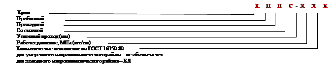 Пример условного обозначения пробкового проходного крана со смазкой условным проходом 65 мм на рабочее давление 14 МПа (140 кгс/см2)для холодной климатической зоны КППС-65х14ХЛ (рис. 1.19)