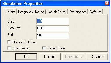 6. Задать свойства моделирования (Simulate - Simulation Properties - вкладка Range):