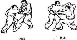 (1)Второй правым кулаком бьет первого в грудь, первый уклоняется поворачивая корпус вокруг своей оси вправо (рис.28).