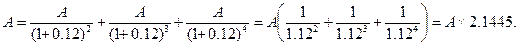 Если в конце года компания получает А ф. ст. и рассчитывает на 12% годового прироста, то тогда сегодняшнее (текущее) значение А ф. ст. для 2 – 4 года работы будет равно: