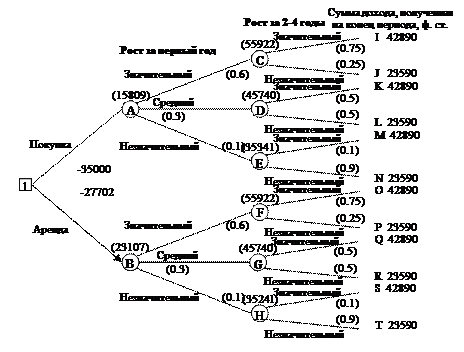 “дерева” – покупка и аренда – не зависит от начальных затрат, а зависит только от сумм предполагаемого дохода, которые рассчитываются на конечном этапе.