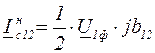 . Емкостный ток в конце линии 12, соединяющий узлы 1 и 2, по закону Ома (рис.3.1,б)