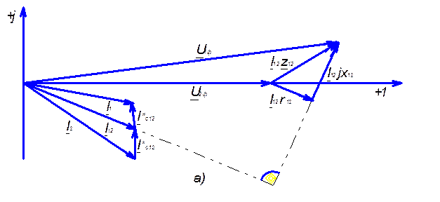 . Векторная диаграмма токов и напряжений для такой линии приведена на рис.3.2,б.