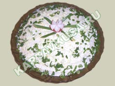 | Сверху жирно промазать майонезом. Затем все слои повторить. Верхний слой - опять майонез. | |