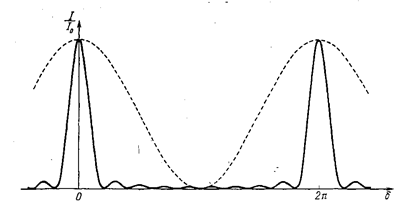 3.Как определяется интенсивность максимума при интерференции от N источников с