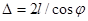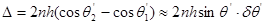 Оптическая разность хода для лучей 1 и 2, образующих интерференционную картину в фокальной плоскости зрительной трубы Т, определяется формулой: