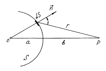 Результирующее колебание в точке P представляет собой суперпозицию колебаний (1), взятых по всей волновой поверхности S