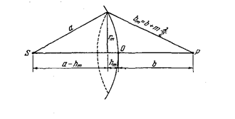 Рассмотрим изображение точечного источника, создаваемое тонкой линзой с радиусами кривизны